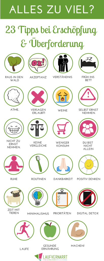 Ich habe mir inzwischen etliche Seiten zu dem Thema durchgelesen, doch noch immer befriedigen mich die Tipps nicht. Bzw. ich merke sofort innere Abwehr, wenn ich sie lese. Wenn ich mich mal kurz frage „Warum?“, muss ich feststellen, dass mir ein Weg fehlt sie auch umzusetzen. Denn irgendwie weiß ich all das, was da steht. Aber ich weiß einfach nicht, wie ich das im Berufsalltag umsetzen soll. Ich lese wieder viel über „Achtsamkeit“ und darüber „den eigen Rhythmus zu finden“. Soweit war ich auch schon… Ich weiß auch, dass ich „Pausen machen“ und „auf meinen Körper hören“ soll. Das ist alles schön und gut und das funktioniert alles für einen kurzen Zeitraum. Doch dann wird mir wieder alles zu viel und ich kann nicht mehr. Ich bin überfordert und ausgelaugt.