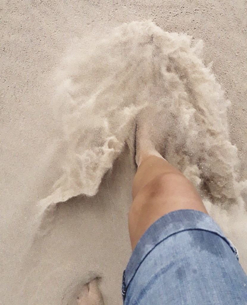 Das Schlurfen müder Füße im Sand.