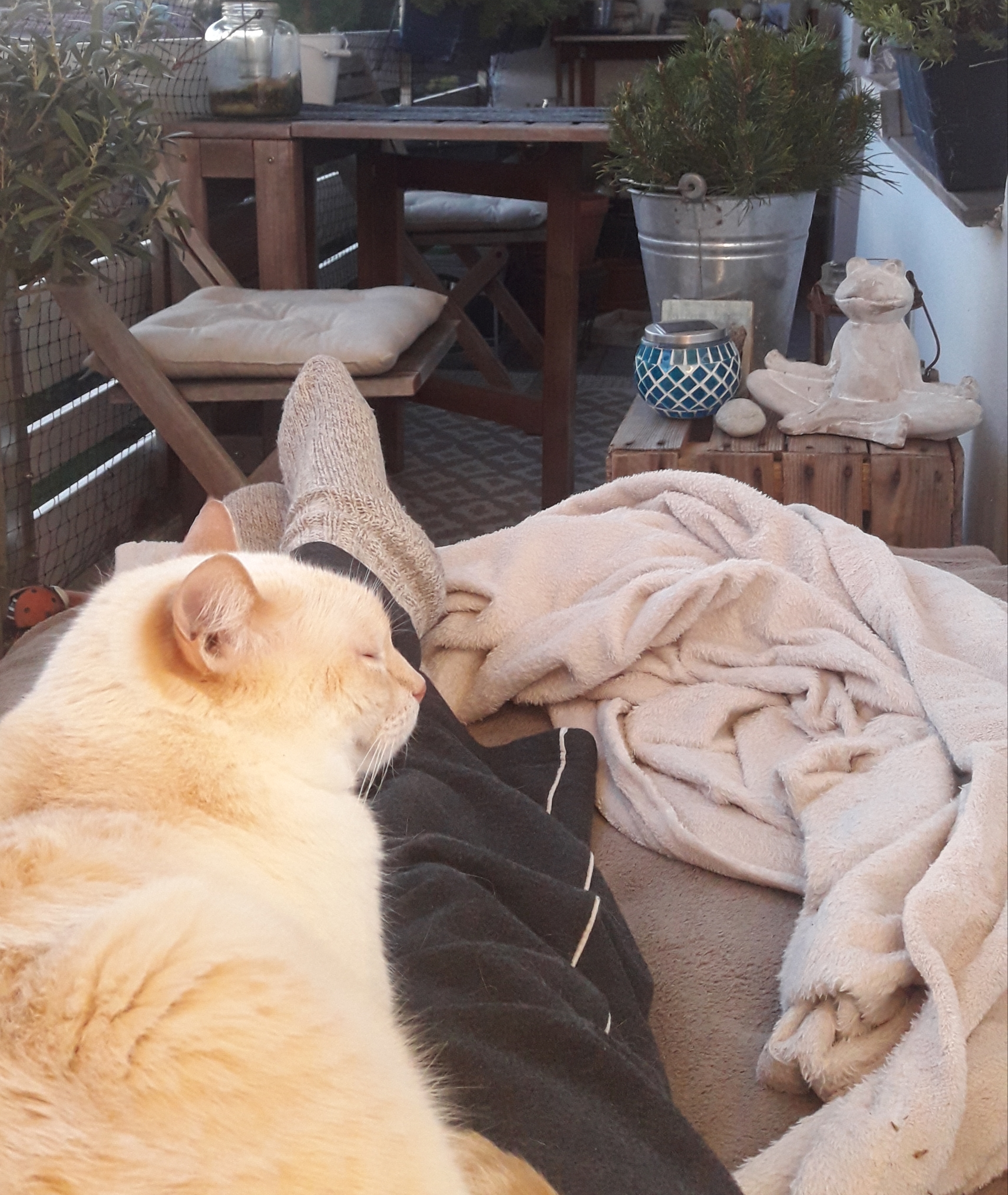 Meine Nachbarin (die Yogalehrerin ohne Sixpack und Räucherstäbchen) hat sich bei ihrem Einzug eine Ratternsofa für ihren Balkon gekauft. Das Sofa fand sie bei eBay, ist somit also seitdem stolzer Zweitbesitzer. Bei der Abholung, schwärmten die Erstbesitzer von ihrem Outdoor-Sofa. So bequem und schick sei es und auch meiner Nachbarin gefiel das schicke Teil ganz wunderbar. Zwei Jahre lang nun steht es schon auf ihrem Balkon, oft sitzt oder liegt sie dort, genießt die Aussicht, liest, trinkt Kaffee (gerne auch mit dem Besuch von oben) oder plant ihre Yogastunden. Herrlich, oder? Ein großer Balkon, Blick ins Grüne und dazu ein Sofa, die Welt schien perfekt… und doch… Je mehr Zeit sie auf ihrem Outdoor-Sofa verbrachte, umso unglücklicher wurde sie. Hier drückte eine Strebe, da fehlte ein Stück und auf der anderen Seite war es wieder zu lang. Wuchtig wirkte das Sofa nun auf dem Balkon und gleichzeitig barg es wenig Sitzfläche, trotz zwei Metern Länge. Was es nämlich zu beachten gab, das Sofa besteht aus drei Teilen. Praktisch, nicht wahr? Da kann man auch mal eines weglassen, wenn man mehr Platz haben möchte. Jaja! ABER: Sitzen kann man nur in der Mitte eines jeweiligen Sitzteils, sonst sitzt man auf den Streben und das ist alles andere als bequem. Es heißt also: Nicht bewegen! Ach und dann gibt es da noch die Rückenlehne, auch die rund herum mit Streben versehen, hier heißt es also: Dickes Kissen, denn sonst drückt es auch hier. Hat man sich dann nun so hingesetzt, dann sitzt man da ganz brav, denn Füße hoch geht ja nur in eine Richtung. Aber sie ist ja erfinderisch, also hat sie sich eine Kiste hingestellt, auf die sie ihre Füße nun auch Richtung Brüstung legen kann. So ganz glücklich war sie dennoch nicht.